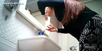He caught his stepsister in the toilet and cum on her mouth!